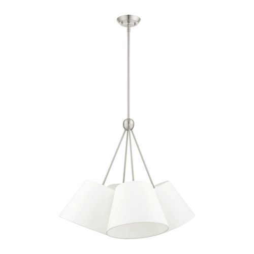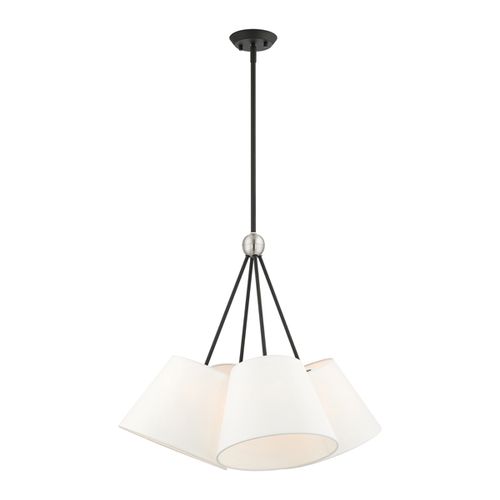 The Prato collection is both modern and versatile. The hand-crafted off-white colored fabric hardback shade sets a pleasant and current mood. The four-light shade cluster add character to this handsomely styled pendant. Perfect fit for the living room, dining room, kitchen and bedroom. This sleek design is available in Black or Brushed Nickel finishes.
