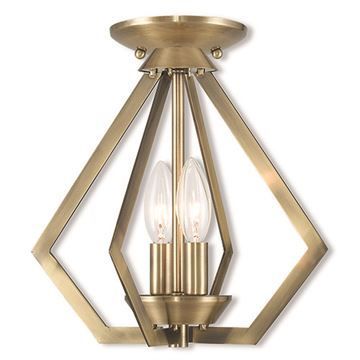 Influenced by modern industrial style, our Livex Lighting Prism 11 1/4 Inch Mini Chandelier/Semi Flush Light has a striking triangular shape. Sleek and contemporary, it's ideal for modern, contemporary or industrial style interiors. Choose from Antique Brass, Black with Brushed Nickel, Bronze, Brushed Nickel, or Polished Chrome finishes.