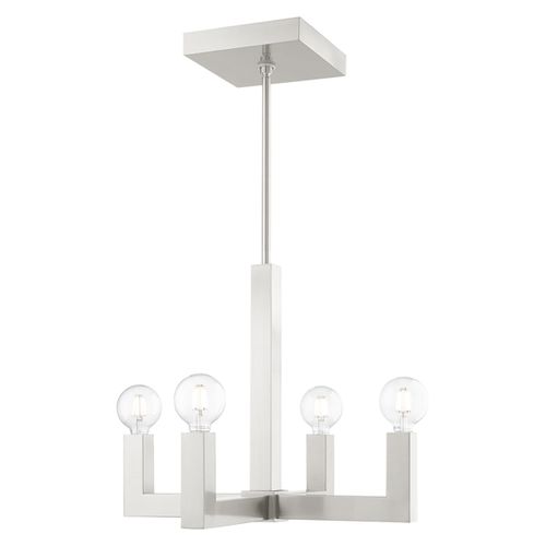 Less is more with this sleek minimalist styled Solna collection. With the stainless steel square tubular arms, this four-light chandelier is the perfect light for adding modern pizzazz to your decor. Available in Brushed Nickel finish.