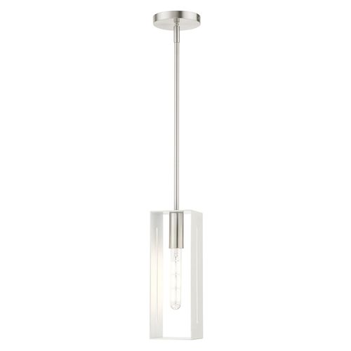 Inspired by the modern skyscraper design, the architectural lines of the Soma collection are truly suitable for urban and contemporary environments such as an industrial loft. The exposed bulbs make a beautiful accompaniment to the distinctive contrasting finishes of this rectilinear piece. This contemporary single light pendant fits perfectly in a minimalistic modern dining room, over the kitchen countertop, in the bathroom or a bedroom. Choose from Brushed Nickel or Textured Black finishes.