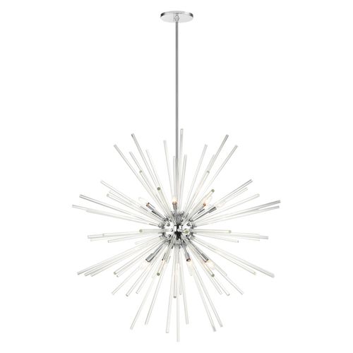 The Utopia sixteen light grand foyer pendant chandelier will become an attention-grabbing feature in your modern home decor. The sleek finish graces the design with elegance and charm, providing a timeless and glamorous quality to any interior. The clear crystal rods give the pendant chandelier a sleek and attractive appearance. Choose from Polished Chrome or Satin Brass finishes.