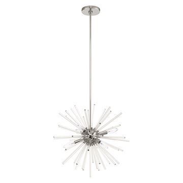 The clear crystal rods gives the Livex Lighting Utopia 20 Inch Pendant Chandelier a sleek and attractive style. The Utopia six light pendant chandelier will become an attention-grabbing feature in your modern home decor. The finish graces the design with elegance and charm, providing a traditional quality to the appearance. Choose from Polished Chrome or Satin Brass finishes.