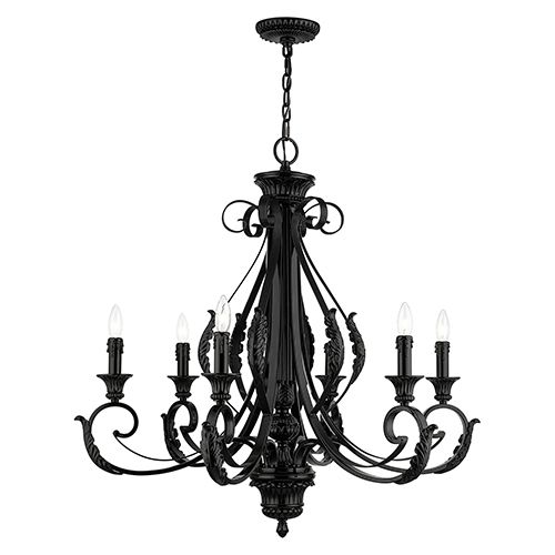The Valencia is a classically inspired fixture with an overlapping leaf pattern and graceful curves. It is reminiscent of a European trestle though the elements of this piece are beautifully rendered in a shiny black, red, or yellow finish which creates a much more contemporary feeling. This six-light large chandelier is perfect for any interior design style. Suspended in your living room, dining room or bedroom, this light will add glamour to your life.