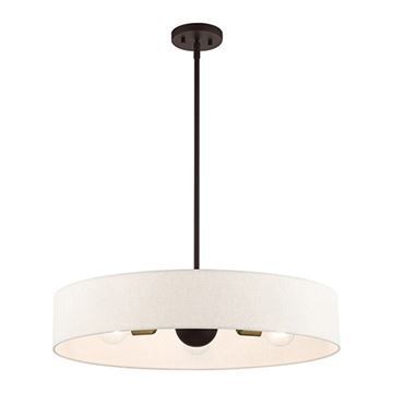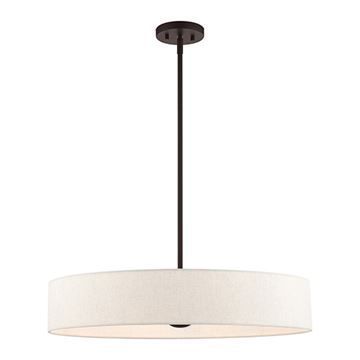 Livex Lighting Venlo 26 Inch Oatmeal Pendant Light features a hand-crafted oatmeal colored fabric hardback shade sets and classic Bronze finish. This sleek large five-light drum pendant is a perfect fit for the living room, dining room, kitchen and bedroom.