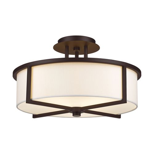 A handsome semi flush mount in warm, natural tones. This semi flush mount light will instantly transform a room from dreary to chic. The finish on the frame complements the exquisite, hand crafted off white hardback drum shade and a satin opal glass diffuser guarantees a soft illumination. Choose from Bronze, Brushed Nickel, or Satin Brass finishes.
