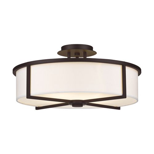 A handsome semi flush mount in warm, natural tones. This semi flush mount light will instantly transform a room from dreary to chic. The finish on the frame complements the exquisite, hand crafted off white hardback drum shade and a satin opal glass diffuser guarantees a soft illumination. Choose from Bronze, Brushed Nickel, or Satin Brass finishes.