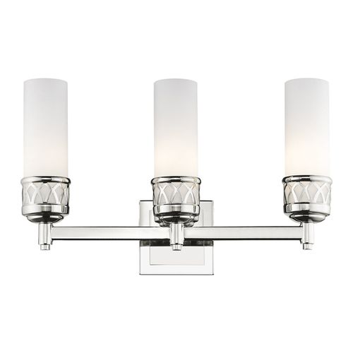 Featuring a smooth cylindrical hand blown satin opal white glass shade for a discerning touch, this contemporary bath fixture features a round framing and classic squared backplate. Finished in an on-trend Polished Chrome hue, it's a definitive look for contemporary and classic looks alike.