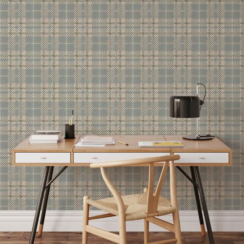 Mitchell Black Clark Plaid Lake Shore Blue Wallpaper