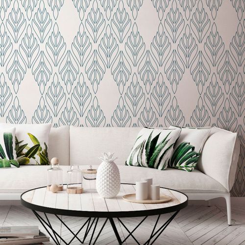 The carefree vibe of Deco Palm is on full display in this collection of color drenched wallpaper patterns to suit those who like their home design to reflect bold and beautiful! Oversized patterns, saturated color and balanced design flow throughout this pattern.