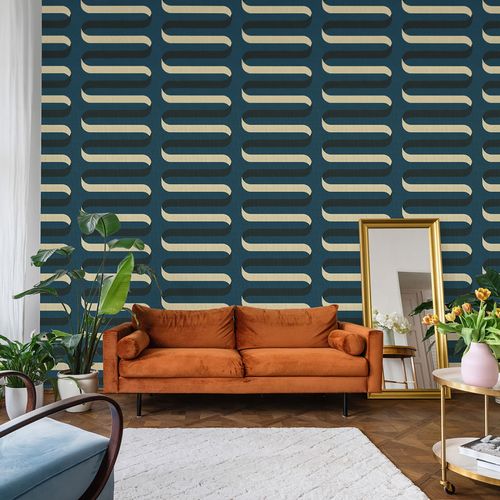 Like a ribbon perfectly unfolding or a serpent?s movement through sand, this pattern neatly climbs up your walls with soft edges and vividly deep hues. For those of us that want to lean into color this rich design can stand on its own or be the framework for bold artwork alike.