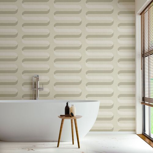 Like a ribbon perfectly unfolding or a serpent?s movement through sand, this pattern neatly climbs up your walls with soft edges and vividly deep hues. For those of us that want to lean into color this rich design can stand on its own or be the framework for bold artwork alike.