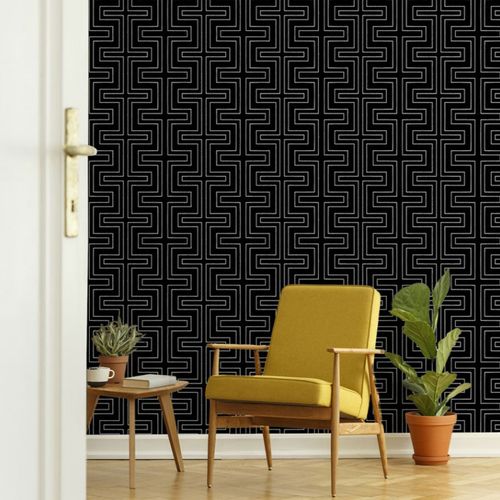 Mitchell Black Geometric Lines Black Wallpaper