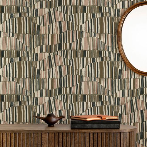 Mitchell Black Jamaican Waves Olive Blush Wallpaper