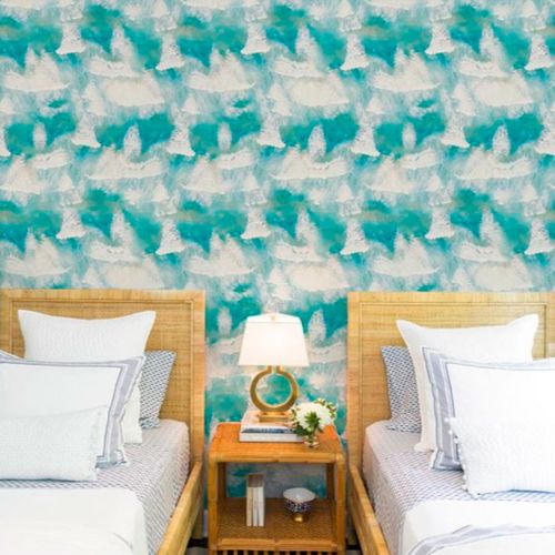 Captivating layers of ocean waves off the coast of Byron Bay, Australia are seen in the Ocean Waves pattern. Featuring varying colors of aqua with patterned white wave caps, slight colors of sand can be seen peeking through the shallow waters.