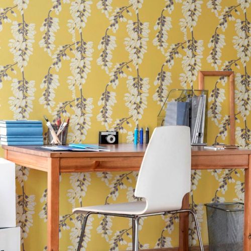 Mitchell Black Wisteria Floral Yellow Wallpaper