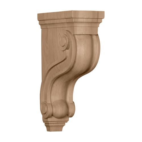 Restorers beautiful, hand carved corbels are used to support mantels, countertops, or cabinets, or can be used as decorative pieces. This 13-Inch Boston Traditional Scroll Corbel is part of our Architectural collection and features a classic scroll design with pretty curved front. With the proper installation, these wood brackets can support up to 250 lbs. They are available in choice of seven wood species, these wood corbels ship to you fully sanded and ready for your paint or stain.