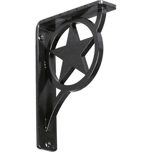 Restorers Architectural Austin Iron Single Brace Shelf Bracket features a large star inside a circle as a brace on an L-bracket. Wrought iron brackets provide an alternative to wood brackets and corbels. Our Wrought Iron Brackets are load-bearing and can be used to support several types of countertops including granite countertops. Choice of four sizes (8", 10", 12", 15"), and four finishes (Ant. Bronze, Ant. Copper, Ant. Pale Gold, and Ant. Silver).