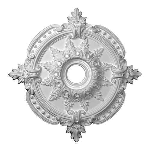 Bring an elegant look to your lighting fixture and ceiling with this exquisite Benson Classic Urethane Ceiling Medallion. This magnificent medallion features a detailed floral design with beaded accents on the edge. Patterned after historical designs, this classic ceiling medallion will turn your boring ceiling into a ceiling fit for a king's palace. It is made of a durable urethane material that has the crisp detail of plaster of wood, but at a fraction of the weight and cost. Urethane is also weather and bug resistant making it ideal for outdoor use. It is also easy to install with glue, nails or screws. This gorgeous medallion is factory primed white and ready to finish.