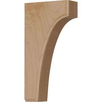 Restorers Architectural Clarksville 8 Inch x 4 Inch Bracket features a simple, squared design with curved front and beveled edge. This classic bracket is used for countertops, bars, shelves, kitchen islands, range hoods, mantels, and more. With the proper installation, these wood brackets can support up to 250 lbs, which gives you the flexibility to use a decorative bracket for support. Choice of seven wood species - Alder, Cherry, Mahogany, Maple, Red Oak, Rubberwood, and Walnut. Widths: 1 3/4", 3 1/2", and 5 1/4".