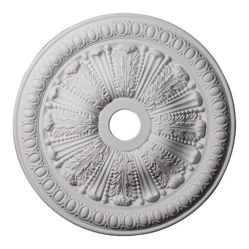 Large ceiling medallions give a dramatic focal point to plain ceilings. Our 28-inch Tomango Urethane Ceiling Medallion is modeled after historical designs and features a beautifully detailed leaf motif with egg and dart border. This classic design is made from polyurethane for exquisite detail and super durability. Urethane will not warp, crack or rot and is weather and insect resistant. The lightweight medallion is easily mounted with construction adhesive and screws and is shipped ready to paint or stain.