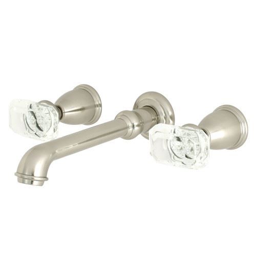 The exquisite design of this faucet tastefully flatters the elegant architecture of traditional homes with its fine detailing. Attached to the wall behind your sink, the horizontal pop adds a stunning element to your bathroom design. Clean-up is also made a breeze as counter space is cleared up. The Krystal Onyx Two-Handle Wall Mount Bathroom Faucet and its featured sturdy brass construction and premium brushed nickel finish are guaranteed to glamorize your home's traditional ensemble for years to come.