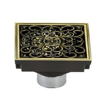 Restorers Watercourse Scroll 4 Inch Square Grid Shower Drain