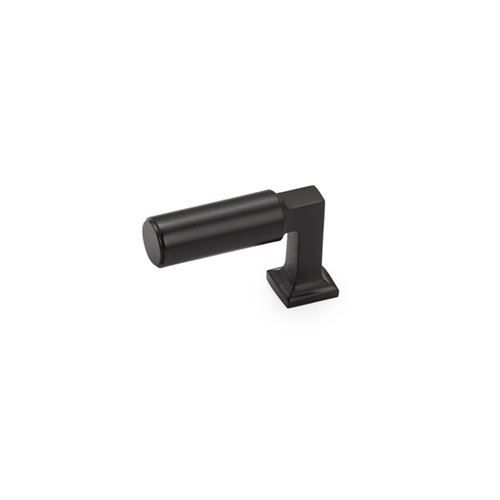 Schaub Haniburton Finger Cabinet Pull features a round bar at a 90 degree angle to a square post with stepped base. Available in six finishes.