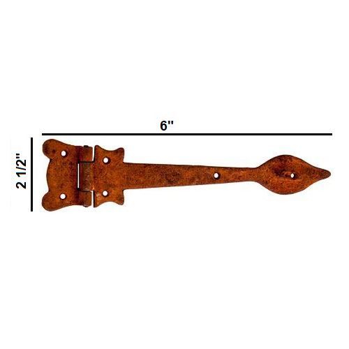 Restorers Spoon Strap Hinge will give a rustic charm to your gates, doors, chests, cabinets. These heavy-duty hinges will add rustic authenticity and function to any project. Choose 6", 12", 18" or 24" lengths in choice of Black Powder Coat, Oil Blackened, Weathered Bronze, or Rust finish.