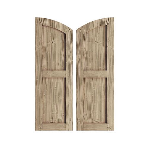 TimberThane Tan Two Flat Elliptical Sandblast Faux Wood Shutters