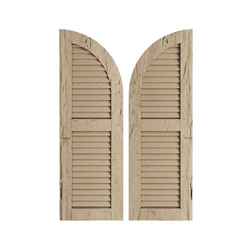 TimberThane Tan Two Louver Quarter Arch Hand Hewn Faux Wood Shutters