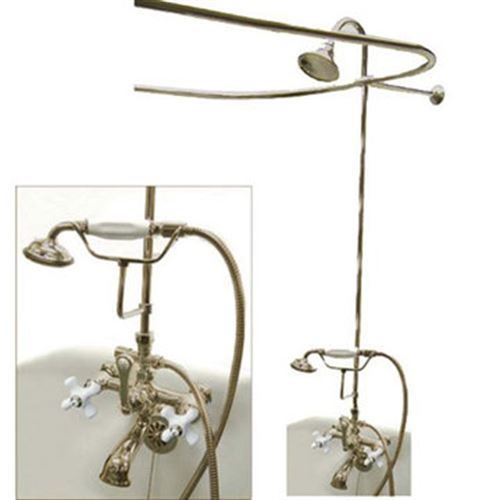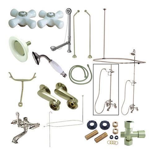 Everything you need for your clawfoot tub is included in this package. The vintage shower package with double offset supply includes faucet, hand shower and cradle, shower riser and shower head, curtain rod, chain plug drain and overflow, and supply lines all constructed of high quality brass to ensure reliability and durability. The premier finish resists tarnishing and corrosion. All mounting hardware is included and standard US plumbing connections are used.